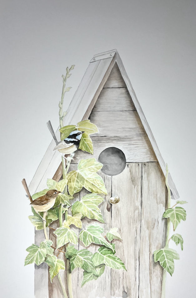 I am currently focusing on translating the effects of the elements on the coastal landscape. Also, of capturing the character, through careful observation, of the bird life in our area.