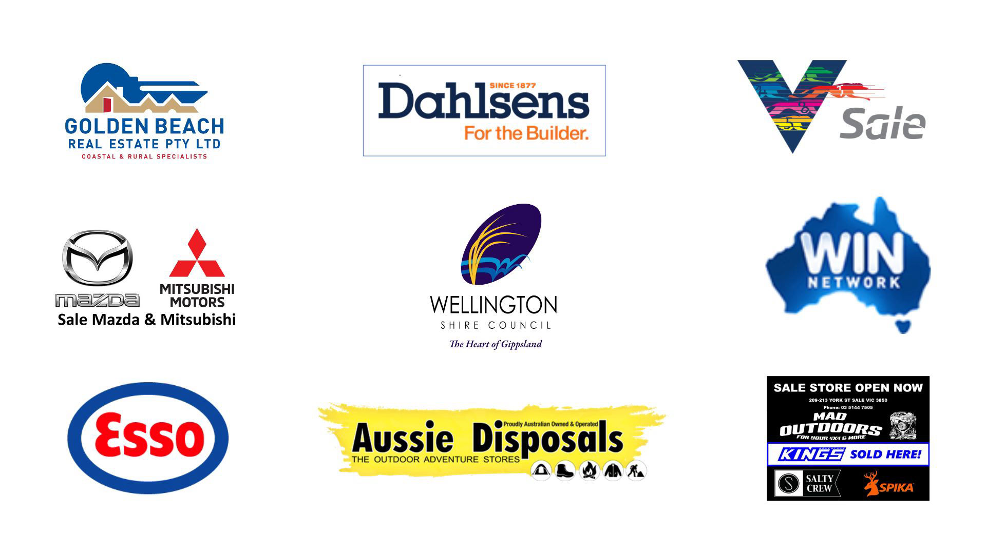 Follow these links to find out more about our sponsors:Golden Beach Real EstateSale GreyhoundsSale MazdaWellington Shire CouncilWIN Network Traralgon